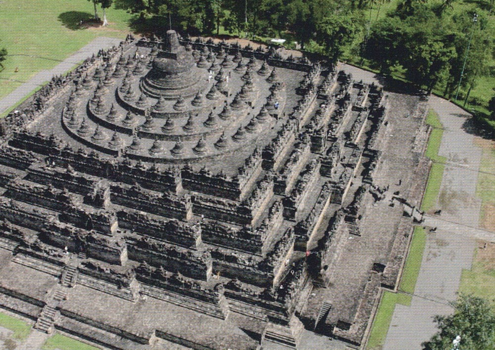 Conçu comme un mandala, ce monument figure un labyrinthe concentrique que le fidèle parcourt en suivant les 10 étapes de l’initiation pour parvenir à la sagesse.